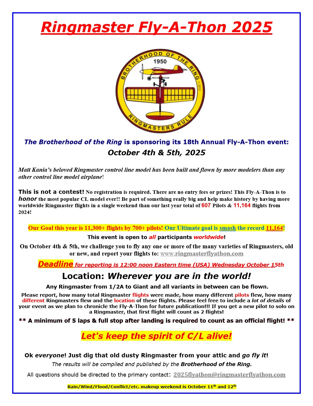 You can download files for the 2024 Annual Worldwide Ringmaster Fly-A-Thon informational Flyer and the official 2024 Logo on the following pages! There are also files for Ringmaster building plans and Decals. See buttons below.